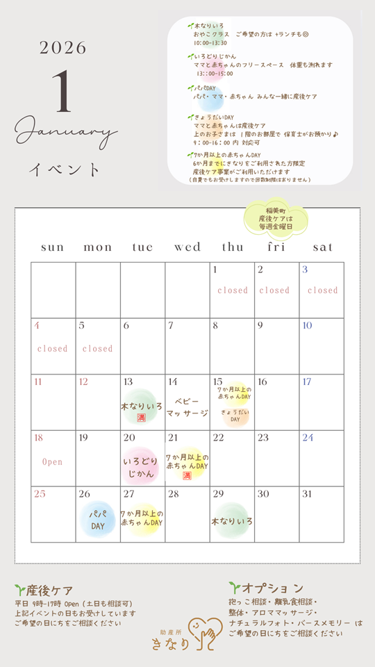 助産所 きなりでは、イベント・クラス(セミナー)なども開催中↓↓↓